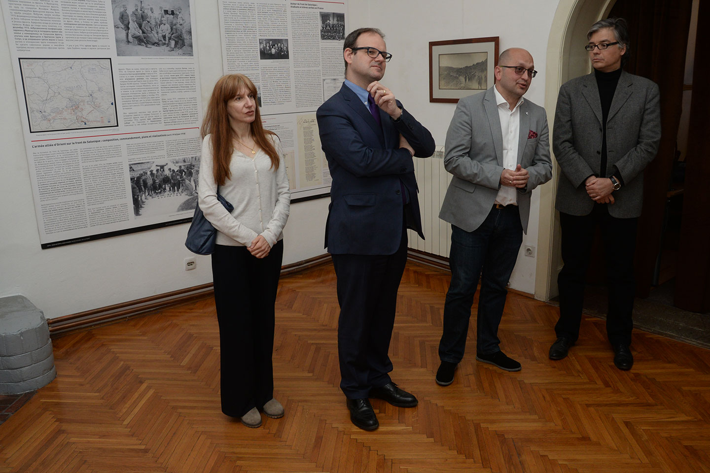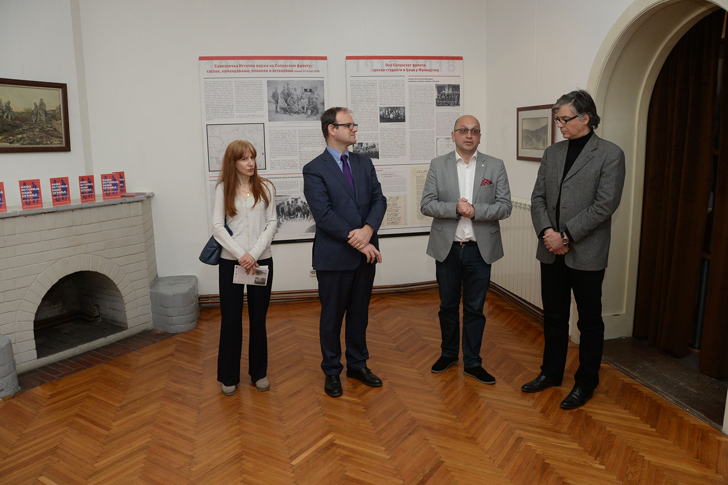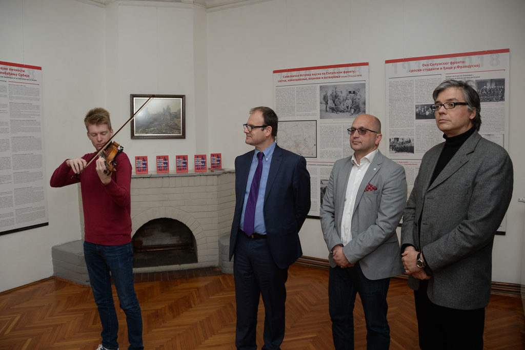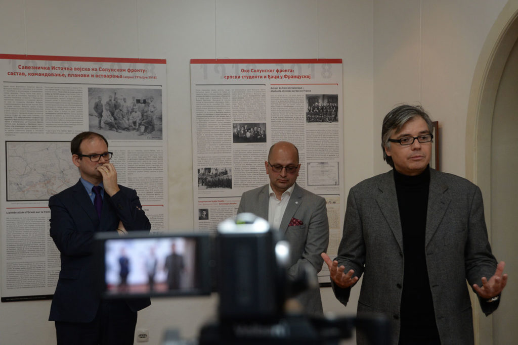 На самом почетку присутнима се обратио директор Александар Марушић истакавши задовољство што је изложба уприличена у Музеју рудничко-таковског краја, посебно се захваливши господину Jean-Baptiste Cuzinu, саветнику за културну и научну сарадњу Француске амбасаде и директору Француског института у Србији, Соњи Филиповић координаторки пројекта и преводиоцу, и историчару др Станиславу Сретеновићу коаутору изложбе. Марушић је истакао да је историја српског народа пуна ратних разарања, битака, нестајања, подсетивши присутне да је прошле године обележен један век од ослобођења Горњег Милановца. Током рата Србија је имала своје пријатеље и савезнике, а један од најзначајнијих сваезника била је управо Француска. Овом приликом је на изложби, без обзира што наш крај баштини много угледних официра као нпр. Божидар Терузић, Љубо Милић, Спасоје Тешић, изложен материјал који је везан за Срета Сретеновићу из села Семедраж, а који је заслужан за ослобођење Битоља 1916. године, и Станимира Раловића, капетана II класе, носиоца ордена Легије части. Породица Раловић је сачувала заоставштину свог претка и овом приликом уступила један део Музеју за изложбу. Поставку су употпунили и предмети из збирке Музеја и приватне колекције колекционара Момчила Пауновића са Рудника. За поставку изложбе била је задужена Ана Јелић, кустос историчар уметности из Музеја рудничко-таковског краја. Гостима се обратио и један од аутора изложбе историчар др Станислав Сретеновић ракавши да је путујући из Београда ка Горњем Милановцу гледао поља и благе долине око Рудника и да није могао а да се не сети да су управо та поља Шумадије и дивне природне лепоте инспирисале многе наше пријатеље и саборце од пре 100 година. Сретеновић је био пре 11 година такође гост Музеја, и том приликом је говорио о француско српским односима између два светска рата. Овом приликом Сретеновић је поменуо име француског географа Гастон Гривијеа, чије име у великој мери говори о трагици Првог светског рата, али и о томе колико су пропатили и наши савезници. Гривије је био вероватно најбољи познавалац Србије и Шумадије. Његова докторска дисертација била је везана за Шумадију и овај крај. Док је боравио у Београду радио је на Универзитету и истраживао је у Шумадији. Међутим. његов живот је прекинут негде на фронтовима Првог светског рата 1914-15. године и на жалост није успео да да онај максимум који су његови савременици од њега очекивалаи. Овај пример великог човека и поштоваоца Србије и њене културе је прекунут. Он је симбол читаве једне генерације. Идеја за изложбу била је да користећи познате чињенице и историјске резултате на јасан начин опишемо историјске догађаје који су везани за ослобађање Србије тј. за период оа 15. септембра 1918. године када је пробијен Солунски фронт до 1. новембра исте године када су српске трупе ушле у Београд и ослободиле Србију истакао је Сретеновић. Србија је ослобођена не само својим залагањем, већ и залагањем својих савезника у првом реду Француске. Овом изложбом се управо жели подвући тај аспект, јер правцем са југа од Вардара и Мораве ка северу ка Београду којим је ишла Прва српске армија, ишле су и Француске трупе. Француске трупе су посебно учествовале у ослобађању градова на истоку Србије, док су српске трупе ишле ка Београду. Аутори изложбе су овом изложбом желели да се дотак
