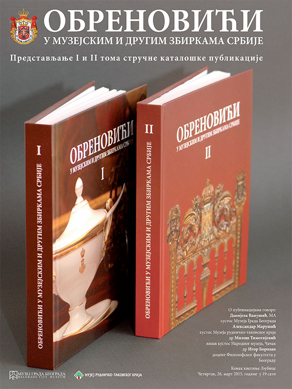 У четвртак 26. марта 2015.године, у 19 сати, у Музеју града Београда у простору Конака кнегиње Љубице, биће представљени први и други том стручне каталошке публикације Обреновићи у музејским и другим збиркама Србије. О овом значајном издавачком подухвату, о чему сведочи и награда асоцијације ICOM за најбољу публикацију у 2014. години, говориће: Данијела Ванушић, МА, кустос Музеја града Београда и један од аутора текстова, Александар Марушић, један од уредника оба тома, др Милош Тимотијевић, рецензент оба издања и др Игор Борозан, рецензент другог издања.
