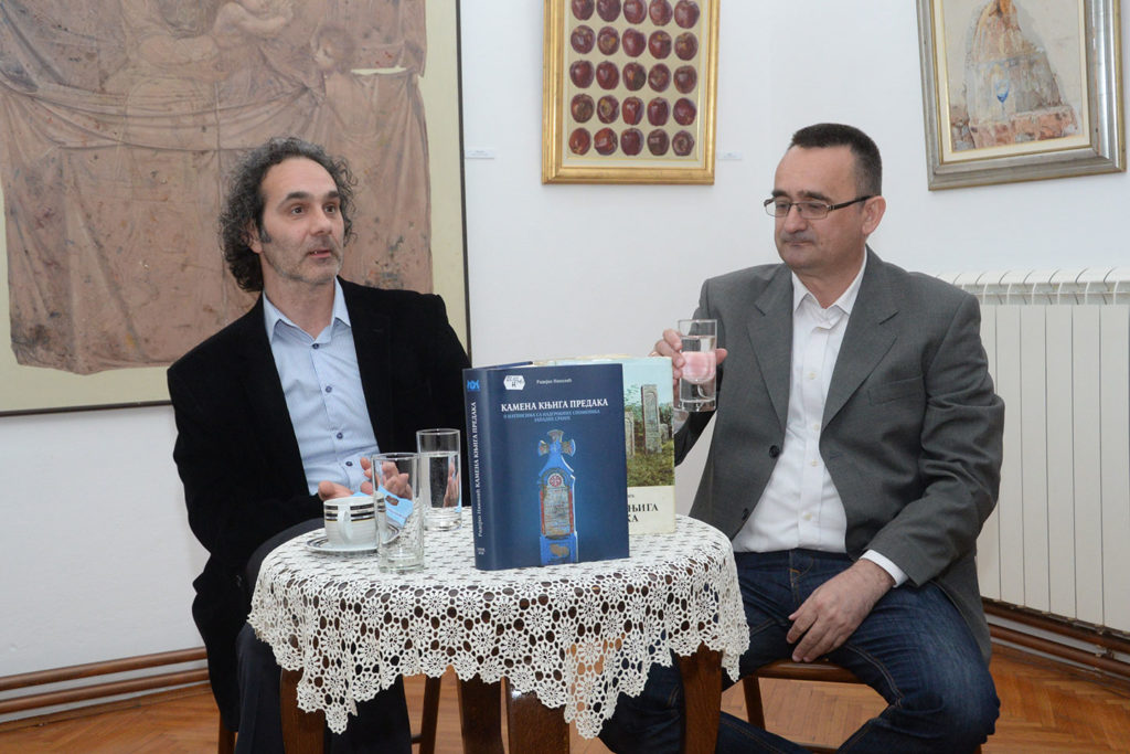 Синоћ смо у нашој галерији представили друго издање књиге Камена књига предака, које је објавио Народни музеј Чачак 2018. године. На самом почетку говорио је фотограф Саша Савоић, који је и сам аутор књиге о крајпуташима и усамљеним надгробницима и когај е Камена књига предака и познанство са Радојком Николићем инспирисало да од почетног предлога да се изради календар са крајпуташима, дође до књиге Срце у камену. Камена књига предака је настала у периоду када су људи сматрали да је смрт праг ка вечном животу, за разлику од данашљег времена када људи све убрзаније живе свесни свога краја, између осталог рекао је др Милош Тимотијевић, историчар Народног музеја Чачак. Многи споменици Западне Србије су обојени у плаво-боју вечности. Радојко Николић је обишао огроман простор, који је по многим стварима другачији од других, између осталог по натписима и орнаментици споменика или по ботаничким обележјима, на пример црног граба који расте само на простору Равне Горе.