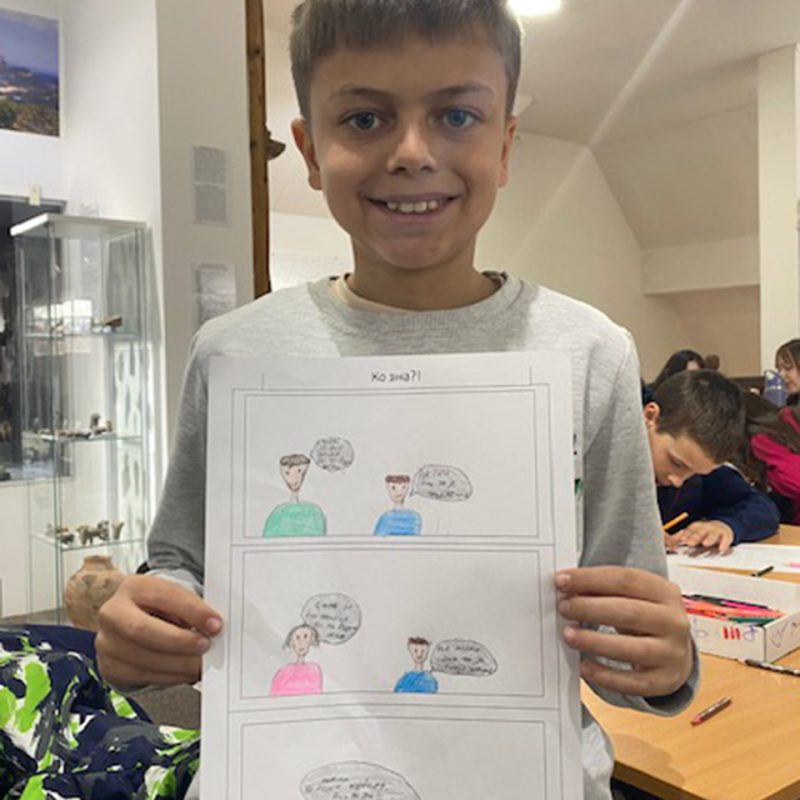 Кратак опис: Након погледане изложбе о стрипу, ученици су се путем презентације упознали с најзначајнијим стварима у вези стрипа, а затим су се и сами опробали у прављењу свог стрипа.