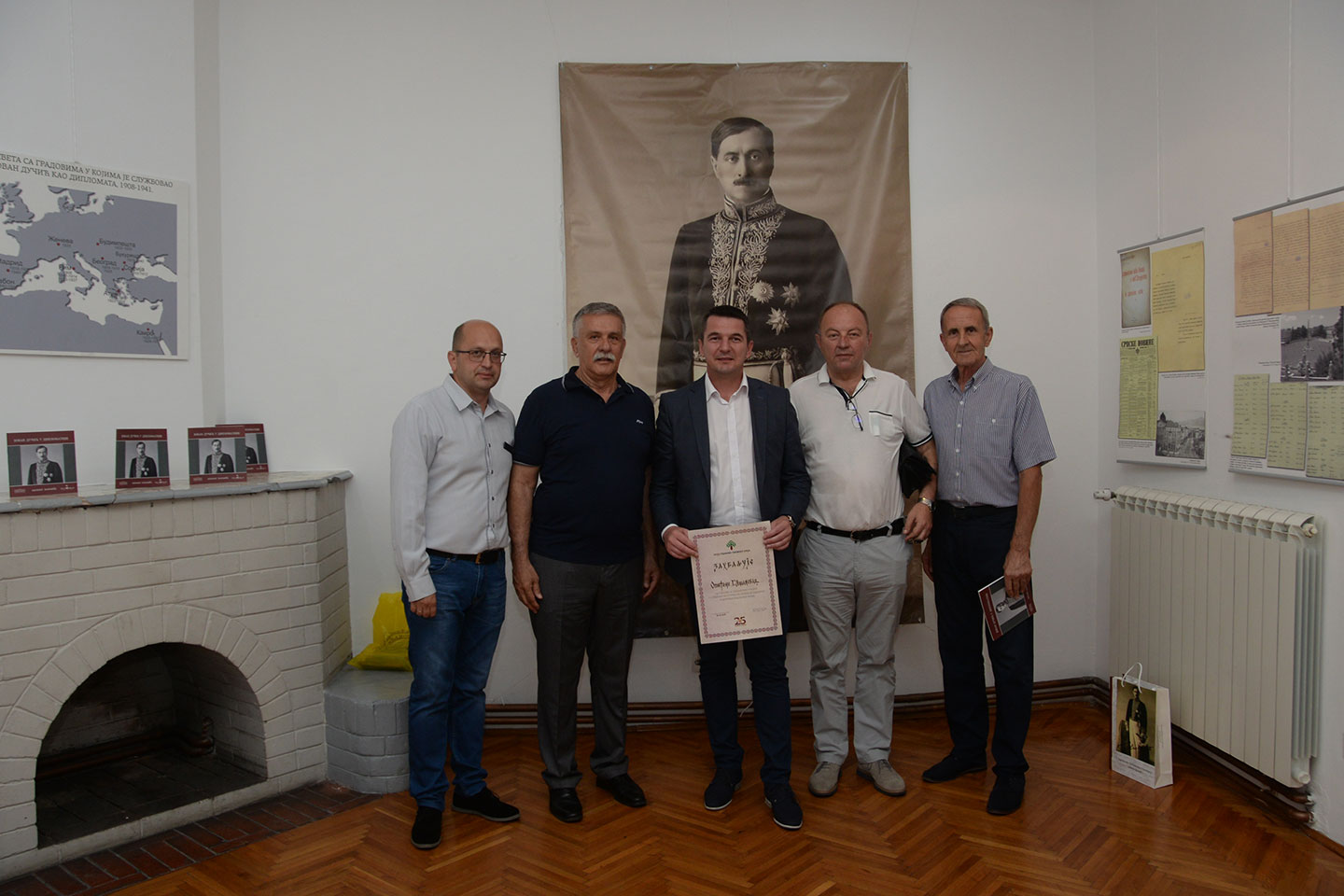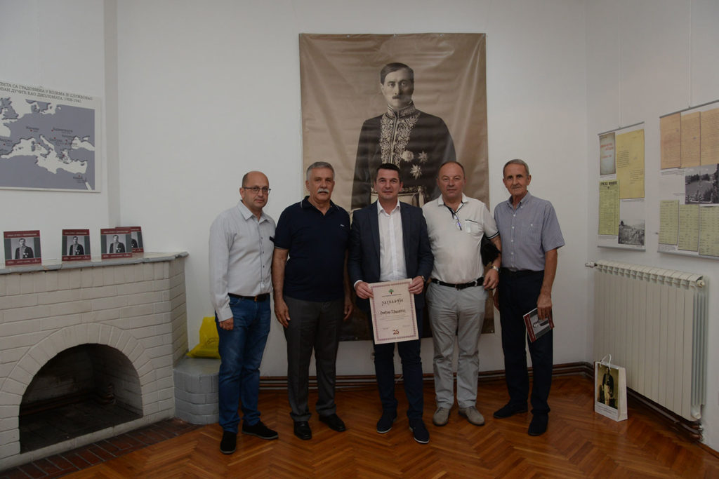 У петак, 21. јуна смо у нашој галерији отворили изложбу „Јован Дучић у дипломатији.“ Иако најчешће Дучића посматрамо кроз врхунске књижевне домете, овог пута је представљено његово дипломатско ангажовање од Софије, Рима, Атине, Мадрида, Женеве, Каира и Будимпеште. У Рим је враћен почетком августа 1933. И овај период представља најтежи у његовој дипломатској каријери а завршен је споразумом Стојадиновић-Ћано 25. марта 1937. у Београду. Своју дипломатску каријеру завршио је у Лисабону и Мадриду, након чега после вести о тешком страдању српског народа одлази у САД где је и преминуо 7. априла 1943. Детаљно о Јовану Дучићу и његовој дипломатској каријери, говорио је на отварању изложбе аутор, Миладин Милошевић. О Удружењу Требињаца у Београду под називом „Јован Дучић“, говорио је Миливоје Рупић, секретар Удружењ, који је истакао богате активности овог Удружења и планиране пројекте који предстоје. Александар Марушић је поздравио госте и истакао сарадњу наше установе са музејима у Херцеговини, где смо имали више гостовања, а ово вече била је и прилика да оснивачу наше установе  Општини Горњи Милановац,председнику Дејану Ковачевићу, доделимо захвалницу, коју додељујемо сарадницима поводом 25 година постојања Музеја рудничко-таковског краја.