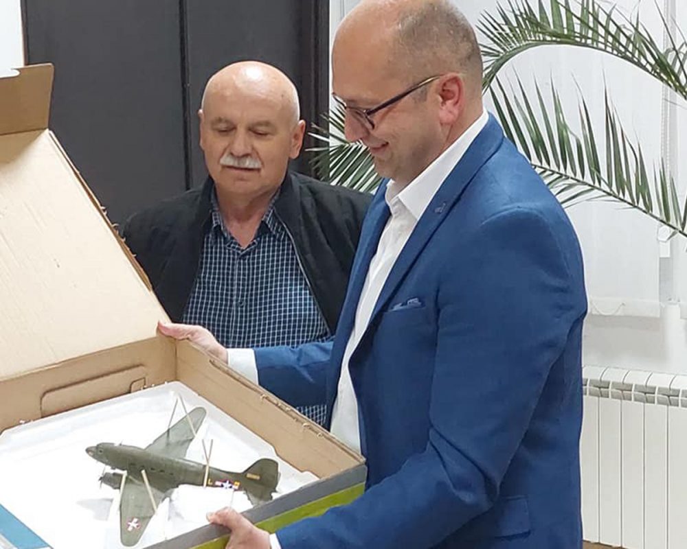 Реч је о макети транспортног авиона ДАГЛАС ДАКОТА Ц 47 који је са Галовића поља у Прањанима у мисији ХАЛИЈАРД евакуисао америчке пилоте. Као чувар баштине рудничко-таковског краја, у име свих грађана наше општине, Музеј се искрено захваљује!