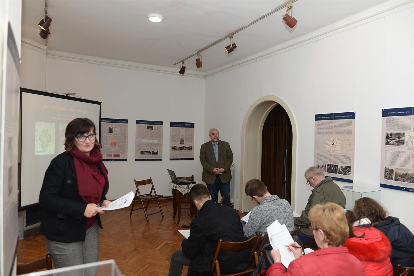 Наша галерија угостила је синоћ заљубљенике у природу и очување биљног и животињског света. У госте смо позвали Природњачки музеј, кога красе изузетне изложбе о д ауторских до интерактивних намењених најмлађима. Њихова тема биле су велике звери, вук, рис и медвед и наши простори. Да ли те звери живе код нас, и да ли их се треба плашити. Пре саме презентације и разговора, посетиоци су попунили анкету о томе каква су њихова сазнања о великим зверима, како су до тих сазнања дошли да ли би волели да знају више.